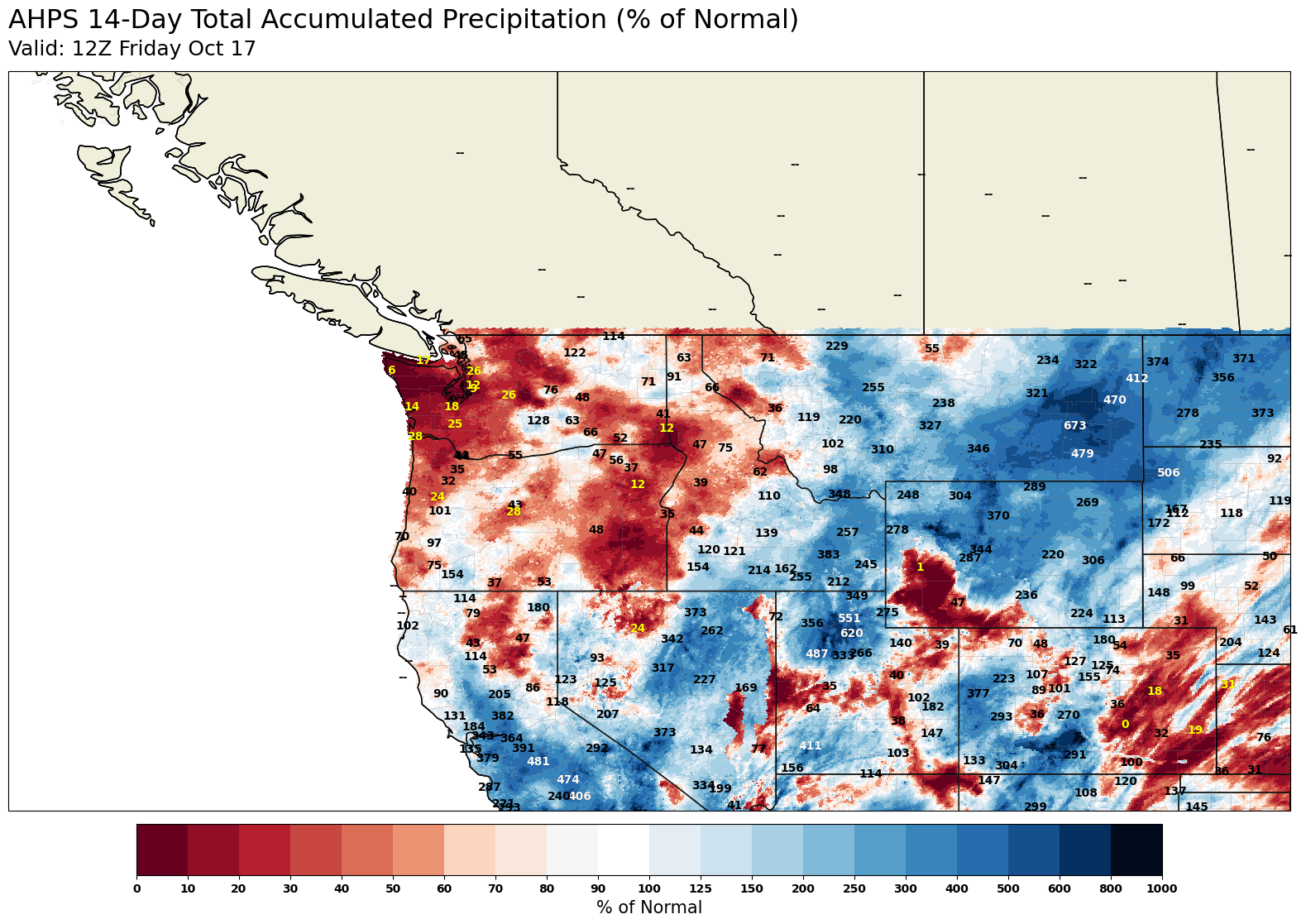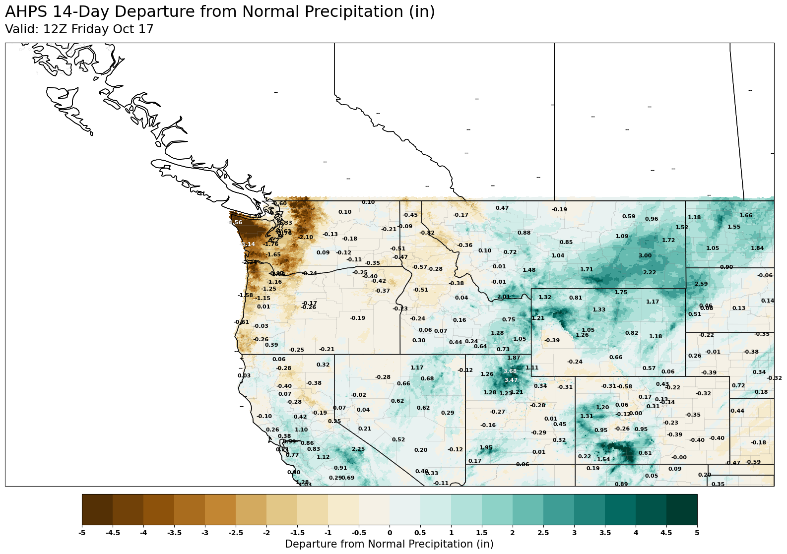 AHPS 14-Day Recent Precipitation (Observed, % of Normal, Departure from Normal)