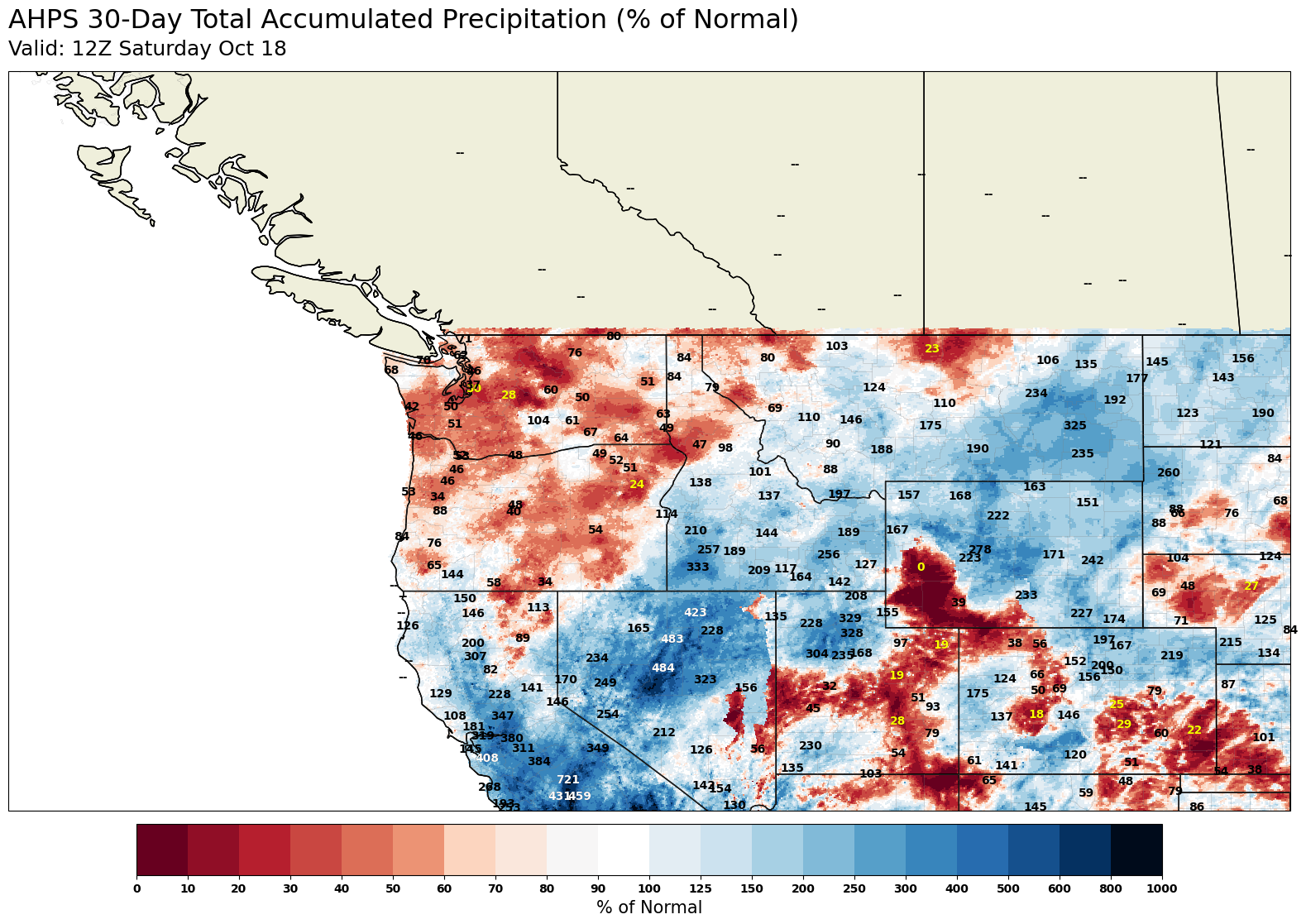 AHPS 30-Day Recent Precipitation (Observed, % of Normal, Departure from Normal)