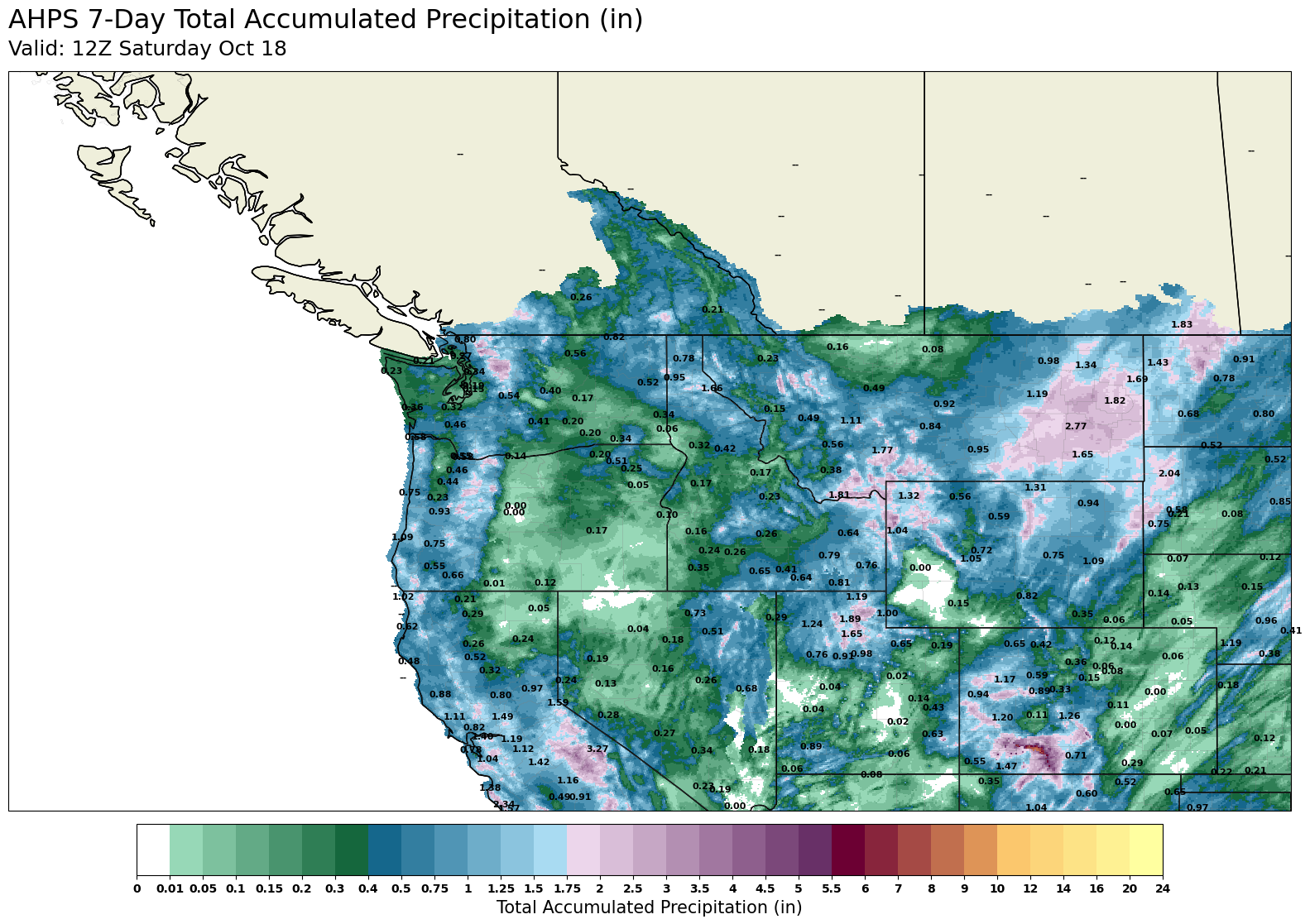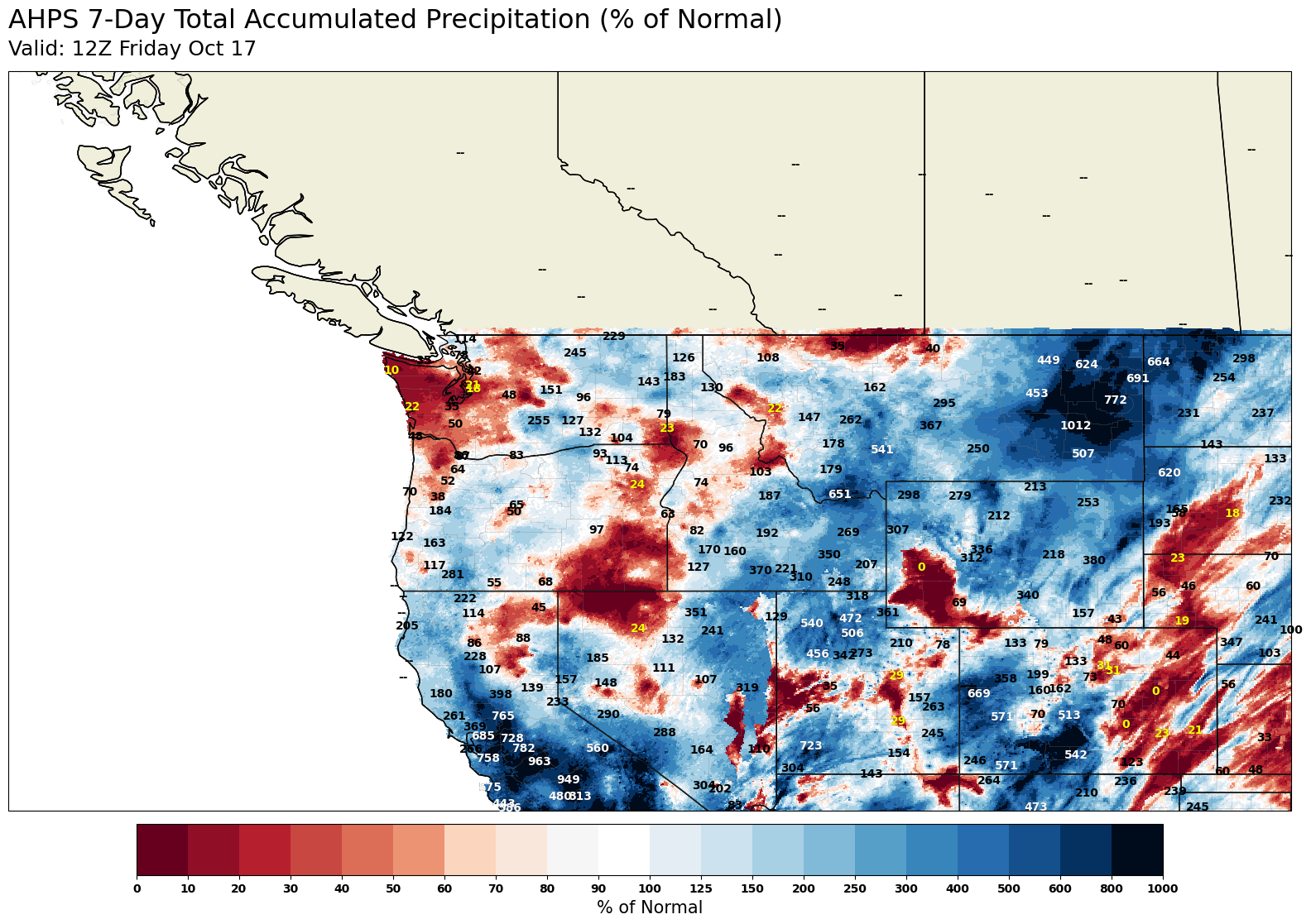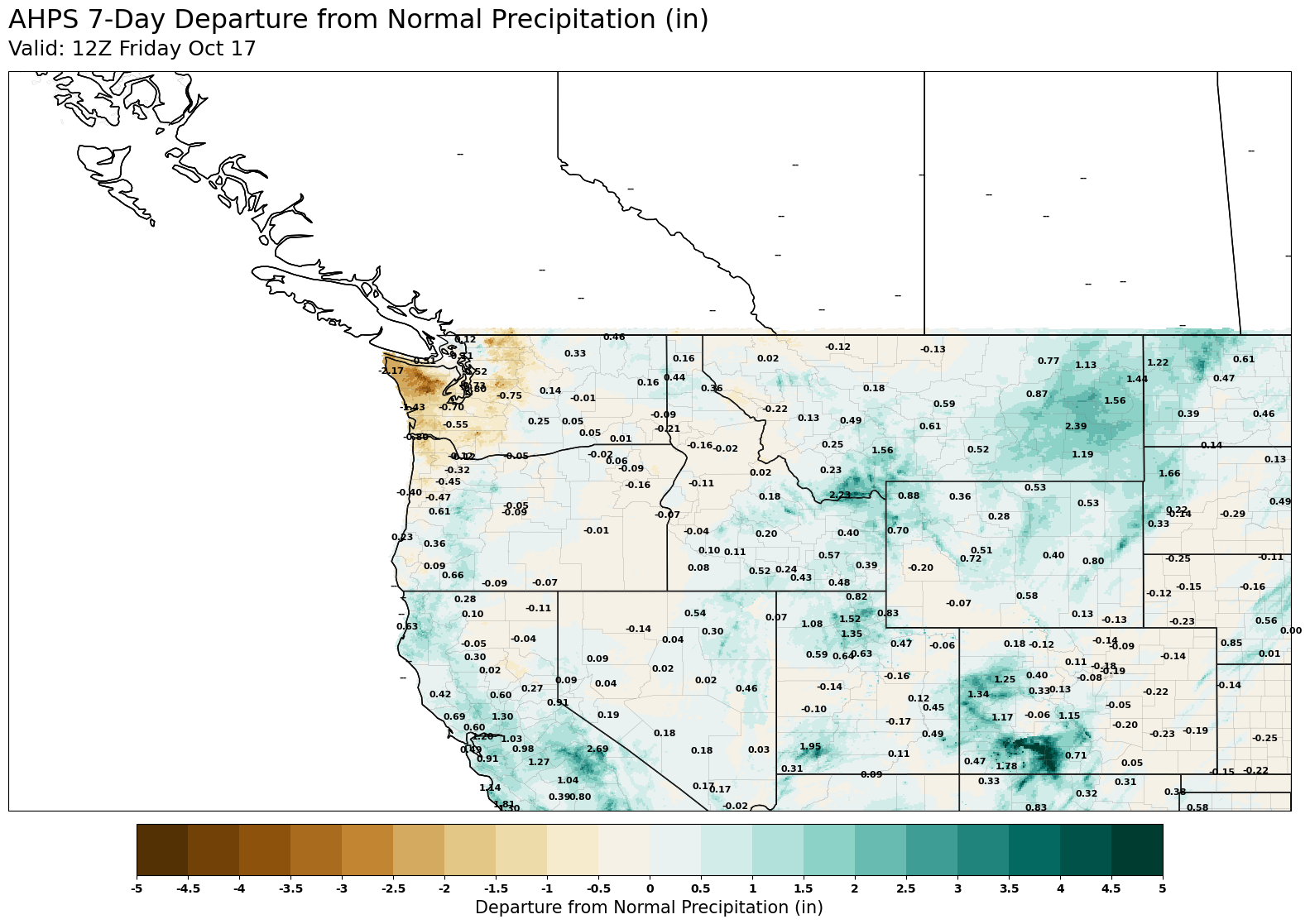 AHPS 7-Day Recent Precipitation (Observed, % of Normal, Departure from Normal)