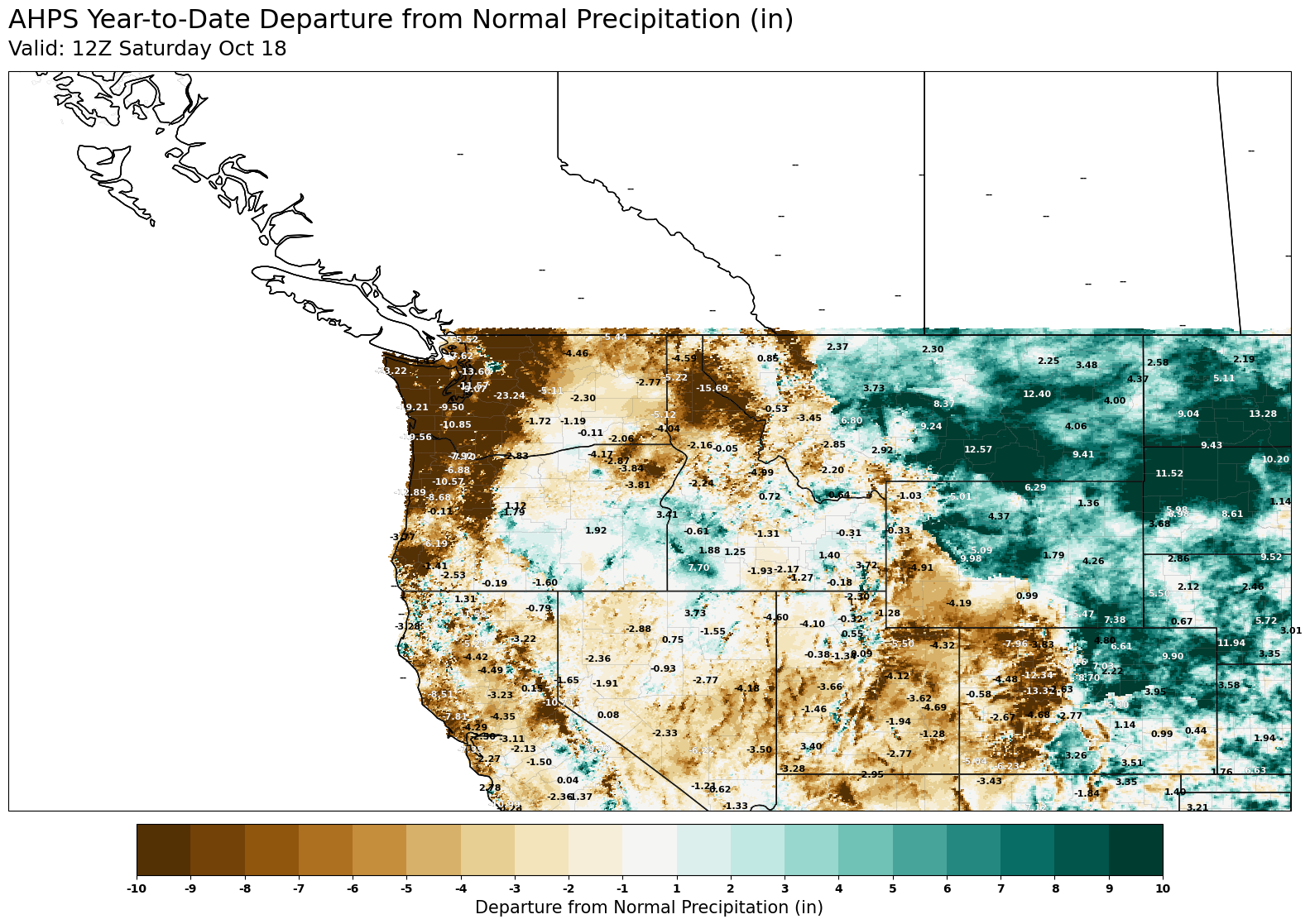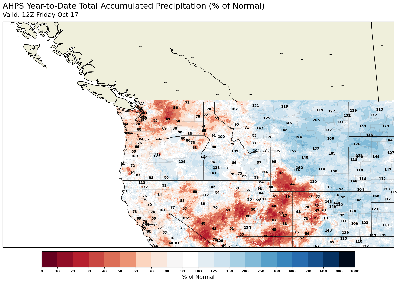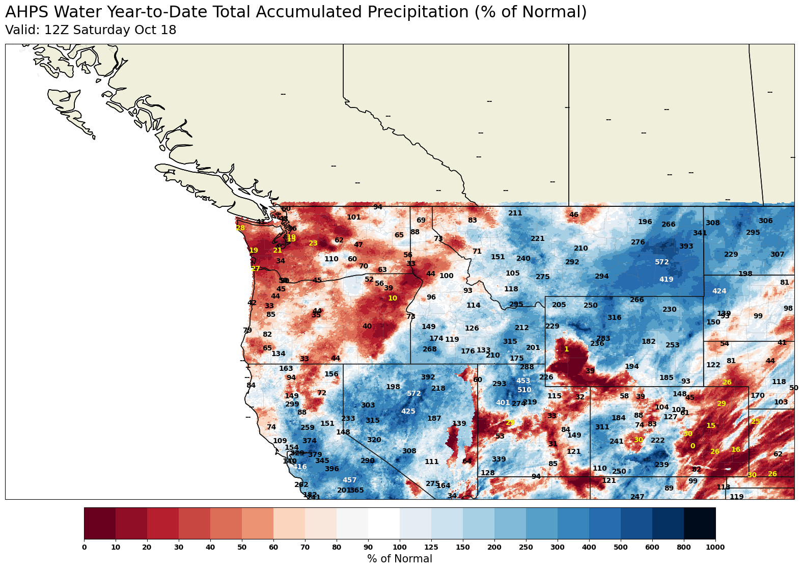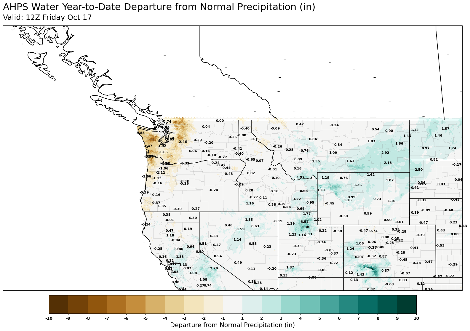 Water-Year-To-Date Recent Precipitation (Observed, % of Normal, Departure from Normal)